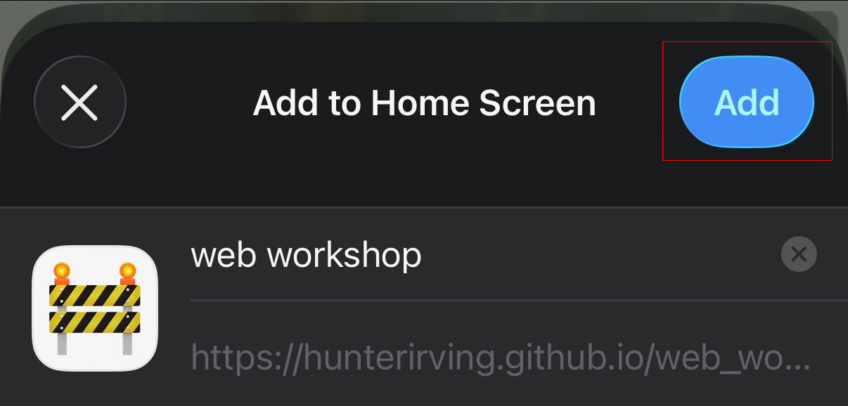 5. Tap the "Add to Home Screen" button:
