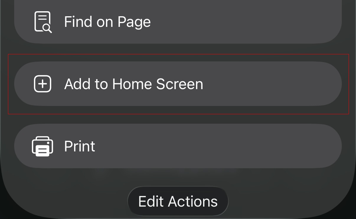 4. Scroll down to reveal the hidden "Add to Home Screen" button:
